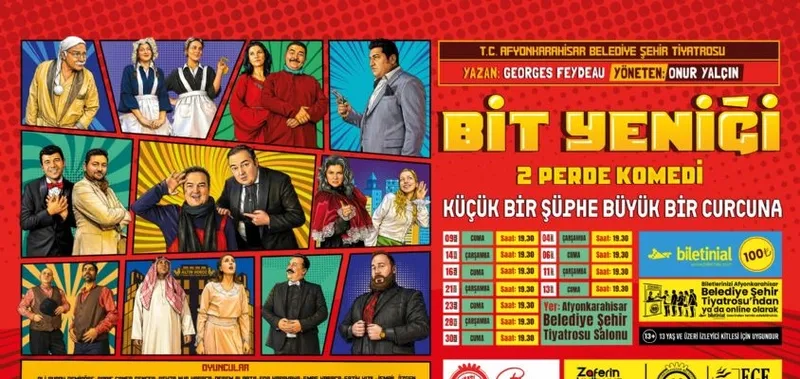 Afyonkarahisar Belediyesi Şehir Tiyatrosu, yeni sezonu Georges Feydeau'nun ünlü komedisi "Bit Yeniği" ile açmaya hazırlanıyor. İlk kez 1907'de sahnelenen ve Fransız vodvil geleneğinin önemli bir örneği olan oyun, yanlış anlamalar üzerine kurulu dinamik kurgusuyla izleyici karşısına çıkacak.