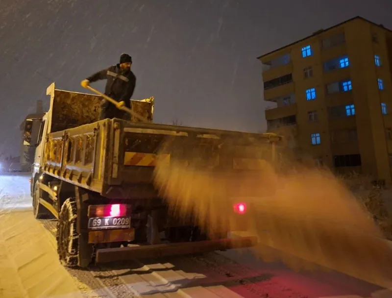 Bayburt'ta akşam saatlerinde etkisini artıran kar yağışı, karla mücadele ekiplerini sahaya indirdi. Ekipler, yağışın başlamasıyla birlikte yoğun bir çalışma başlattı.