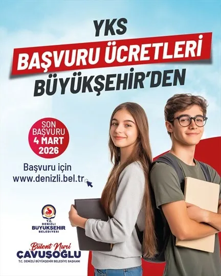 Denizli Büyükşehir Belediye Başkanı Bülent Nuri Çavuşoğlu'nun talimatıyla hayata geçirilen 2026 Yükseköğretim Kurumları Sınavı (YKS) giriş ücreti destek projesinde başvuru süresi sona yaklaşıyor. Denizli Büyükşehir Belediyesi Sosyal Hizmetler Dairesi Başkanlığı tarafından yürütülen proje kapsamında, lise son sınıf öğrencileri ile 2024 ve 2025 yıllarında mezun olan gençlerin 2026 YKS giriş ücretleri karşılanacak. Denizli'de ikamet eden ve şartları taşıyan adayların destekten faydalanmak için 4 Mart 2026 mesai bitimine kadar başvuruda bulunması gerekiyor.
