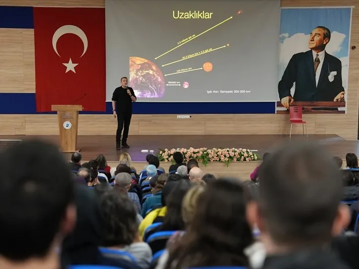 Pamukkale Üniversitesi Eğitim Fakültesi Melek Sözkesen Konferans Salonu’nda düzenlenen konferansa öğrenciler ve akademik personel yoğun ilgi gösterdi. Konuşmacı Dr. Umut Yıldız, evrenin oluşumu, kozmik süreçler ve modern kozmolojinin temel kavramlarını bilimsel bir çerçevede ele aldı.