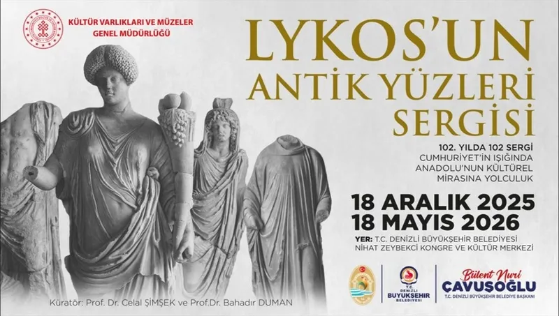 Denizli'nin binlerce yıllık tarihine ışık tutan önemli eserler, "Lykos'un Antik Yüzleri" sergisiyle ilk kez kapsamlı bir şekilde sanatseverlerle buluşuyor. Kültür ve Turizm Bakanlığı ile Denizli Büyükşehir Belediyesi iş birliğiyle hazırlanan sergi, 18 Aralık 2025 Perşembe günü saat 14.00'te Denizli Büyükşehir Belediyesi Kongre ve Kültür Merkezi'nde açılacak.