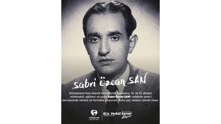 Gümüşhane Belediye Başkanı, eğitimci ve yazar Sabri Özcan San'ın vefatının yıl dönümünde bir anma mesajı yayımladı.