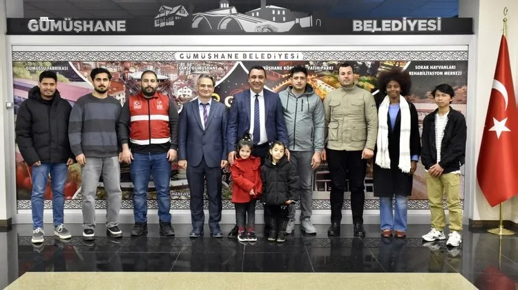 Gümüşhane Belediye Başkanı, Gümüşhane'de eğitim gören göçmen vatandaşları makamında ağırladı.