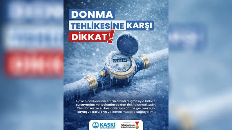 KASKİ Genel Müdürlüğü, hava sıcaklıklarının eksi derecelere düşmesiyle birlikte su sayaçları ve tesisatlarda donma riski meydana geldiğini belirterek dikkatli ve tedbirli olunması noktasında uyarılarda bulundu.