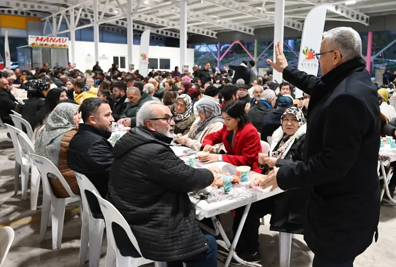 Başkan Necati Topaloğlu, masaları tek tek dolaşarak iftarını açan vatandaşlarla selamlaştı ve sohbet etti. İftar yemeğine katılan vatandaşlar, programda gerçekleştirilen semazen gösterisini ilgiyle izledi. Bazı vatandaşlar gösteriyi cep telefonları ile kaydetti.