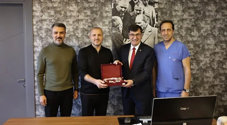 Başkan Kahveci, hastane yönetiminden Uzm. Dr. M. Hilmi Koputan, Dr. Gökalp Çağrı Öztürk ve Hastane Direktörü Uğur Harmanda ile yaptığı görüşmede, sağlık alanında sunulan nitelikli hizmetlerin Kütahya için önemli bir kazanım olduğunu ifade etti.