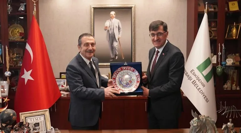 Kütahya Belediye Başkanı Eyüp Kahveci, Eskişehir'in Tepebaşı Belediye Başkanı Dt. Ahmet Ataç'ı makamında ziyaret etti.