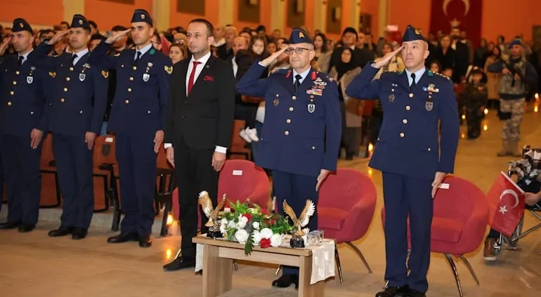 Kütahya Hava Er Eğitim Tugay Komutanlığı Tuğgeneral Hikmet Erkuş Sinema Salonu'nda gerçekleşen tören, sancağın tanıtılması, saygı duruşu ve İstiklal Marşı'nın okunmasıyla başladı.