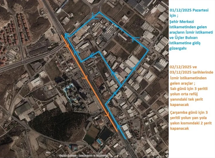 Şehir merkezinden İzmir istikametine gidecek araçlar, Menderes Bulvarı üzerinden Bozburun Caddesi'ne bağlanarak, 7040 Sokak ve Ahmet Nuri Erikoğlu Caddesi güzergâhını kullanıp yeniden Menderes Bulvarı'na ulaşabilecek. Çalışmalar süresince sürücüler için alternatif güzergâhlar belirlenirken, bölgede bulunan yönlendirme tabelalarına uyulması gerektiği önemle vurgulandı..
