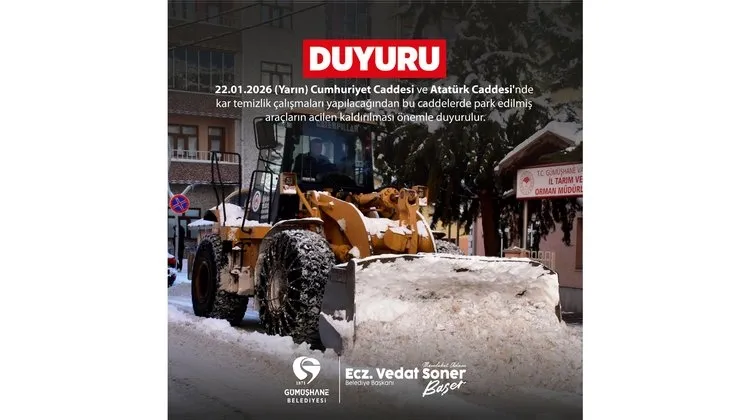 Gümüşhane Belediyesi, bir duyuru yayınladı.