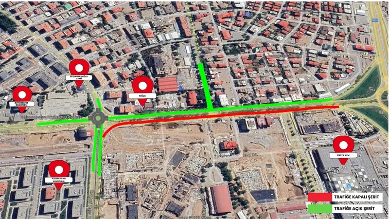 Kahramanmaraş Büyükşehir Belediyesi, Azerbaycan Bulvarı üzerinde Milli İrade Meydanı kavşağından müze kavşağına iniş kısmının 23 Aralık 2025 ile 7 Ocak 2026 tarihleri arasında araç trafiğine kapalı olacağını duyurdu.