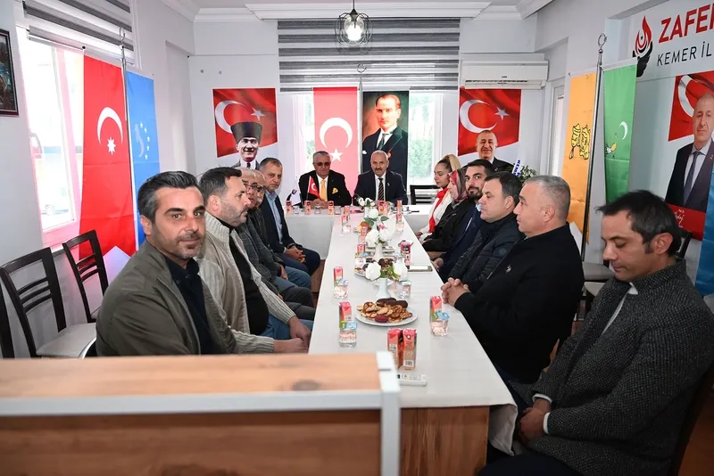 Kemer Belediye Başkanı Necati Topaloğlu, Kemer Belediye Başkan Vekili Cansın Efir, Başkan Yardımcısı Semih Top, Meclis Üyeleri Mustafa Bilici ve Mehmet Akın ile Kuzdere Mahalle Sorumlusu Ayhan Yıldırım'dan oluşan bir heyetle Zafer Partisi Kemer İlçe Başkanı Ahmet Temiz ve ilçe yönetimini ziyaret etti.