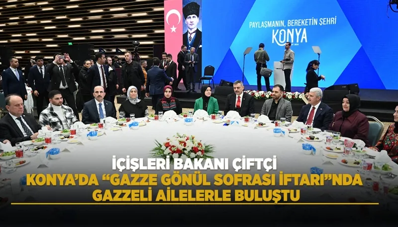 İçişleri Bakanı Mustafa Çiftçi, Konya'da düzenlenen bir iftar programında, şehirde misafir edilen Gazzeli ailelerle bir araya geldi.