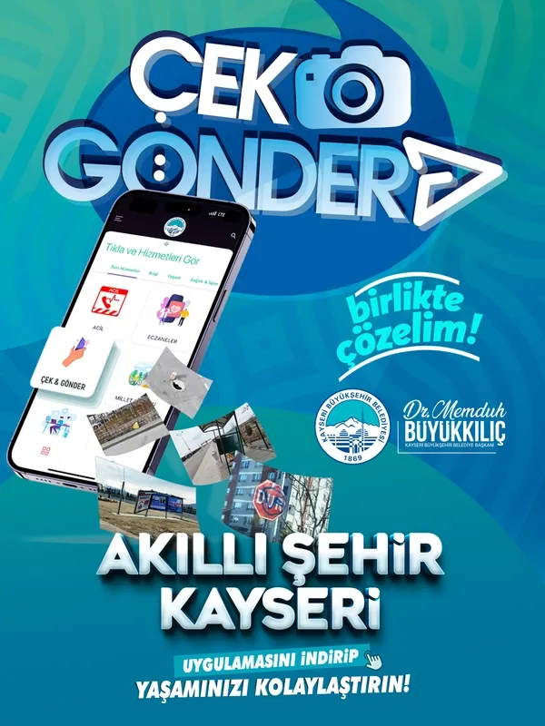 Vatandaşların, 'Akıllı Şehir Kayseri' mobil uygulamasına üye olarak pratik şekilde kullanabildiği 'Çek, Gönder' uygulaması, Büyükşehir Belediyesi'nin şehri ortak akıl ve katılımla yönetme anlayışının bir yansıması olarak öne çıkıyor.