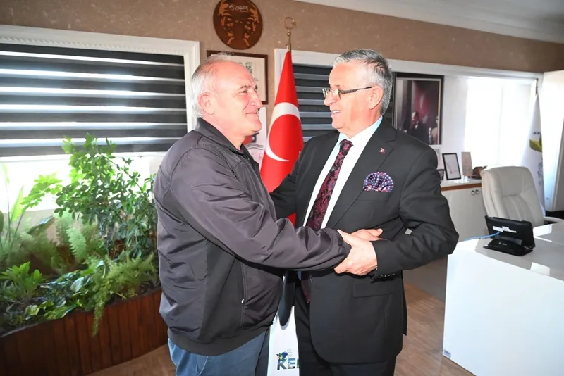 Kemer Belediyesi Temizlik İşleri Müdürlüğü'nden emekliye ayrılan personel İsa Balaman, Belediye Başkanı Necati Topaloğlu'na bir veda ziyareti gerçekleştirdi.