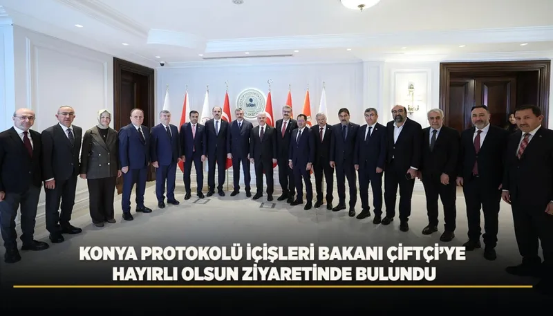 Konya protokolünden oluşan bir heyet, İçişleri Bakanı Mustafa Çiftçi'ye hayırlı olsun ziyaretinde bulundu.