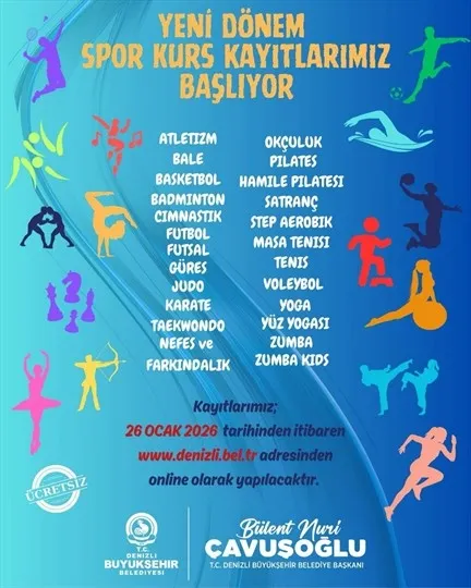 Yeni dönem kurs kayıtları, 26 Ocak 2026 Pazartesi günü saat 08.30'da başlayacak. Vatandaşlar, başvurularını belediyenin resmi internet sitesi olan www.denizli.bel.tr adresi üzerinden online olarak gerçekleştirebilecek.