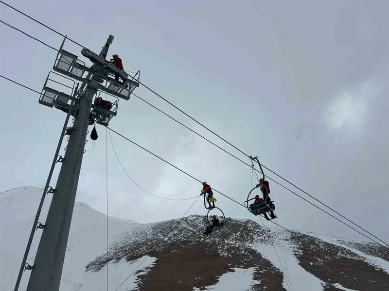 Senaryo gereği kayak merkezinde meydana gelen çığ nedeniyle elektrik kesintisi yaşandı ve telesiyejde 4 kişi mahsur kaldı. Olay yerine sevk edilen ekipler, mahsur kalanları güvenli şekilde tahliye ederek aşağı indirdi.